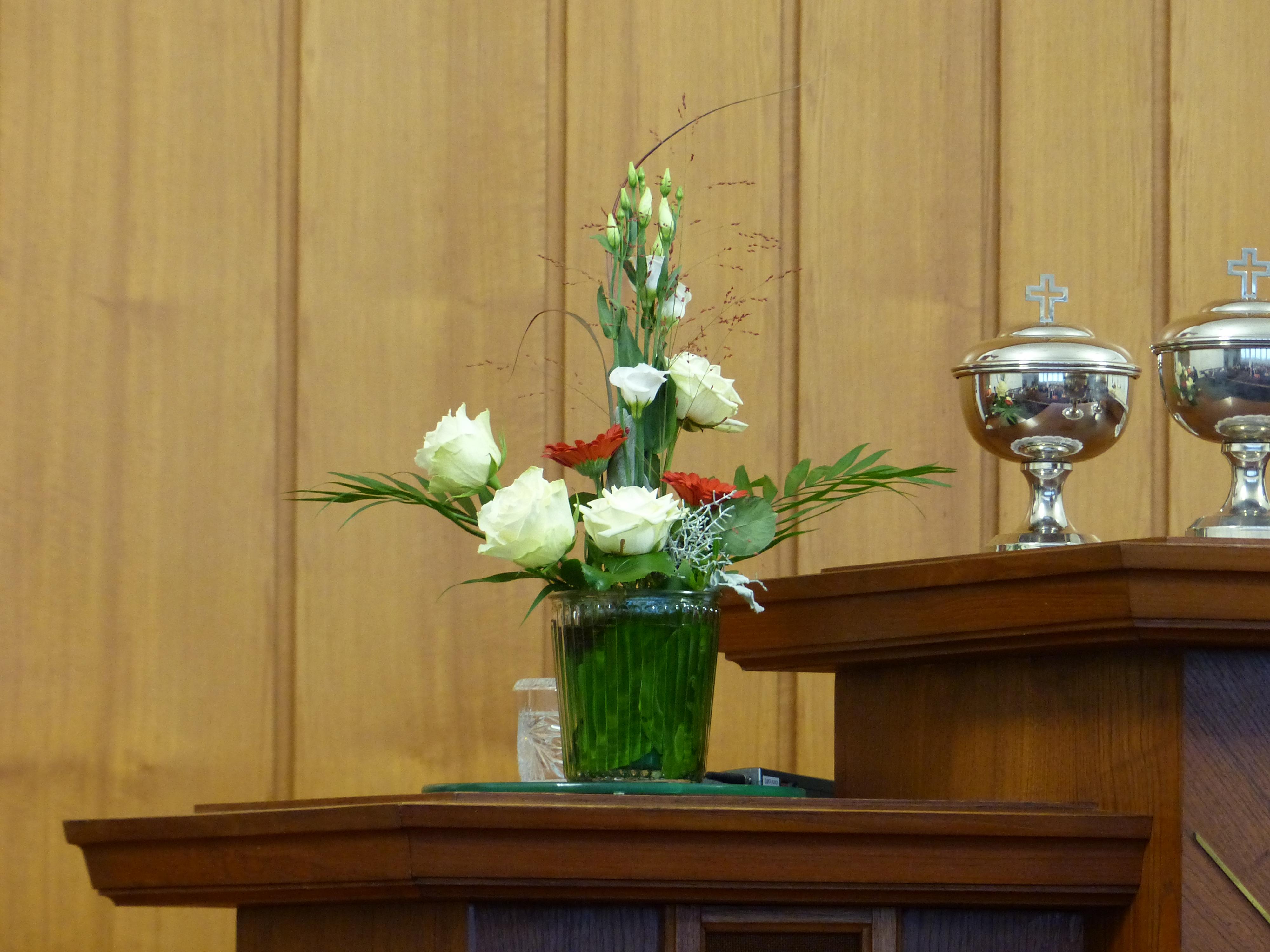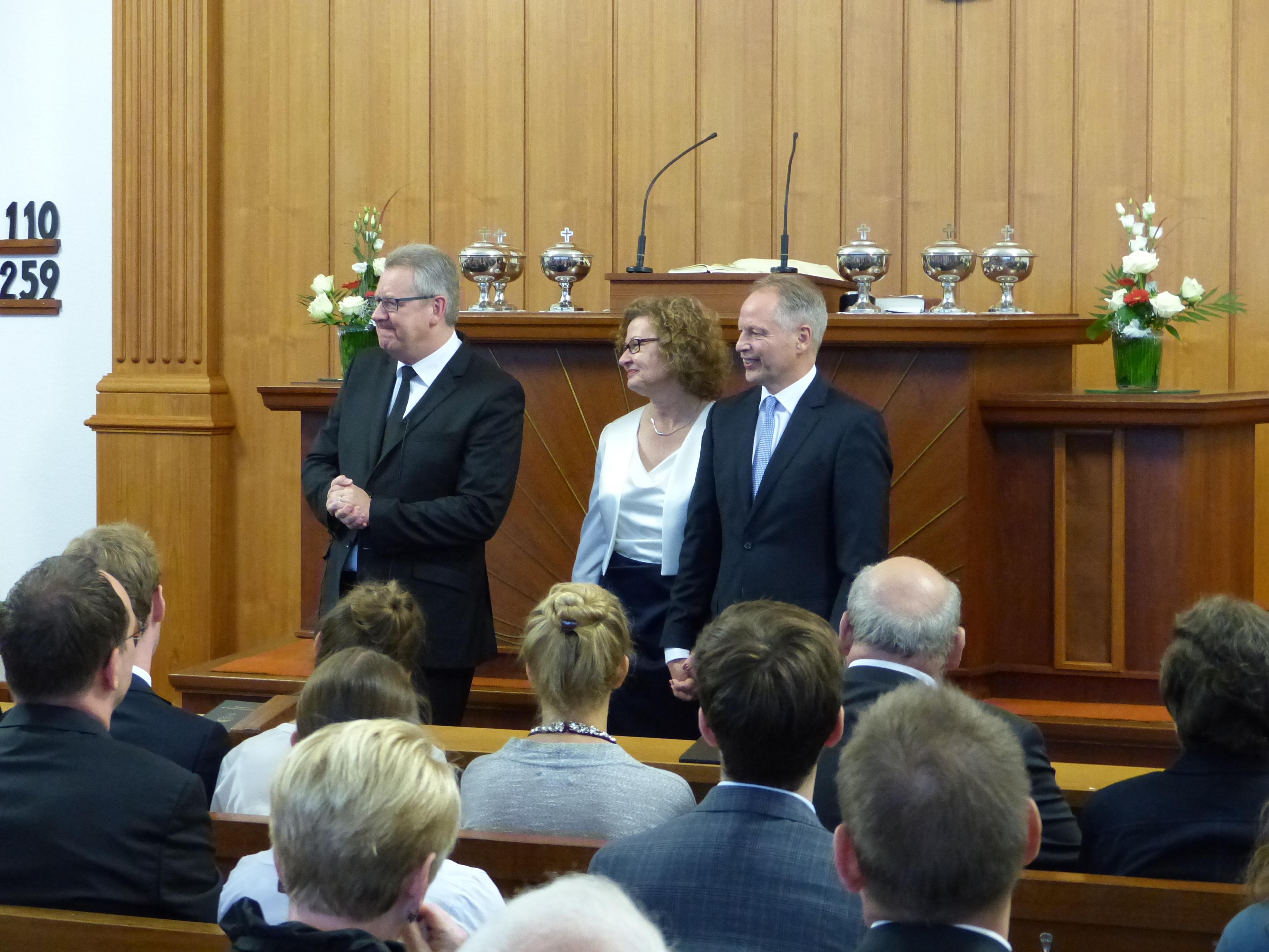Daher hatte er nicht am Altar Platz genommen, sondern beide saßen in der ersten Reihe der Gemeinde.