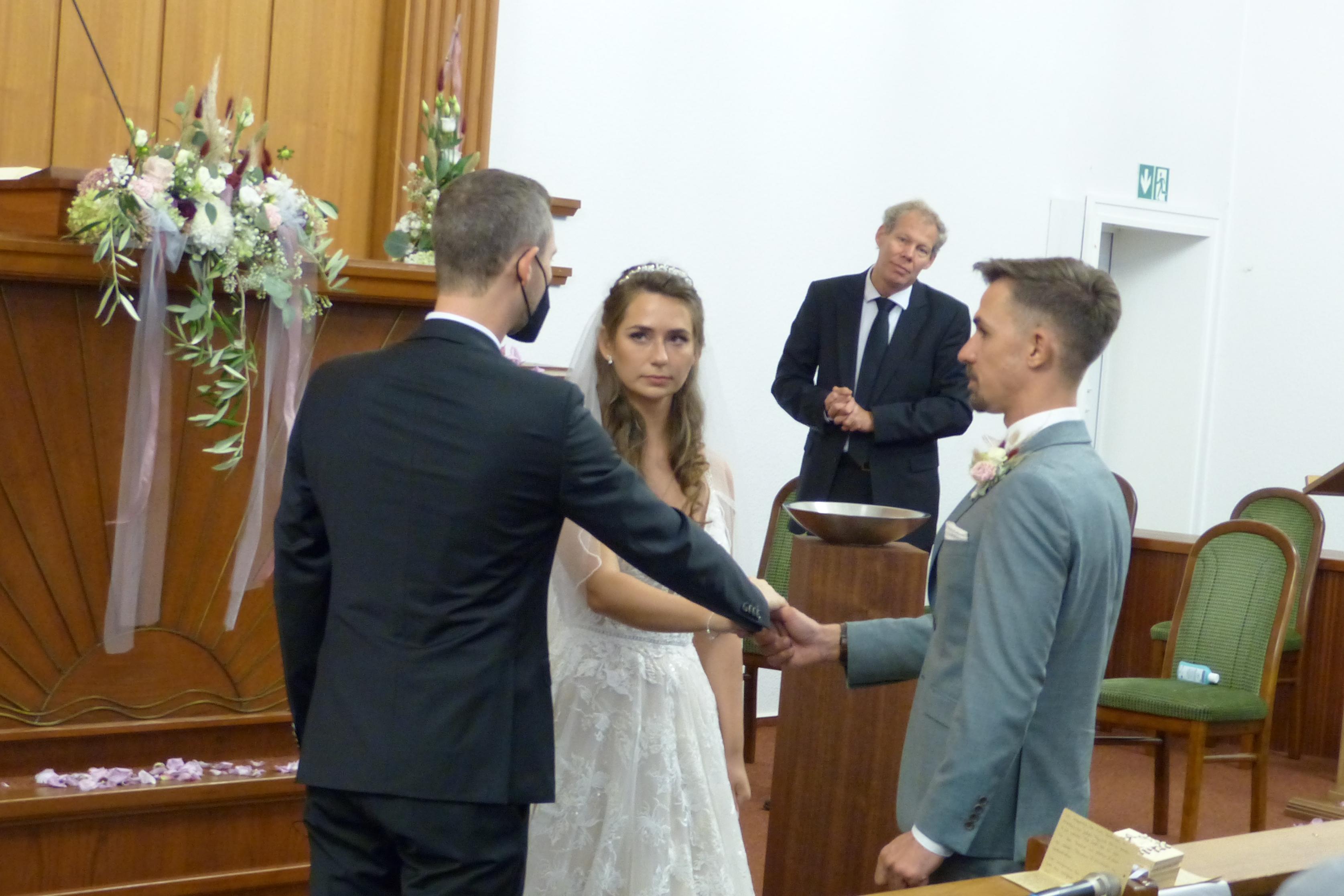 Viele Glaubensgeschwister, Freunde und Familienangehörige erlebten durch Predigt, musikalische Umrahmung und das Brautpaar eine beeindruckende Hochzeitsfeier.