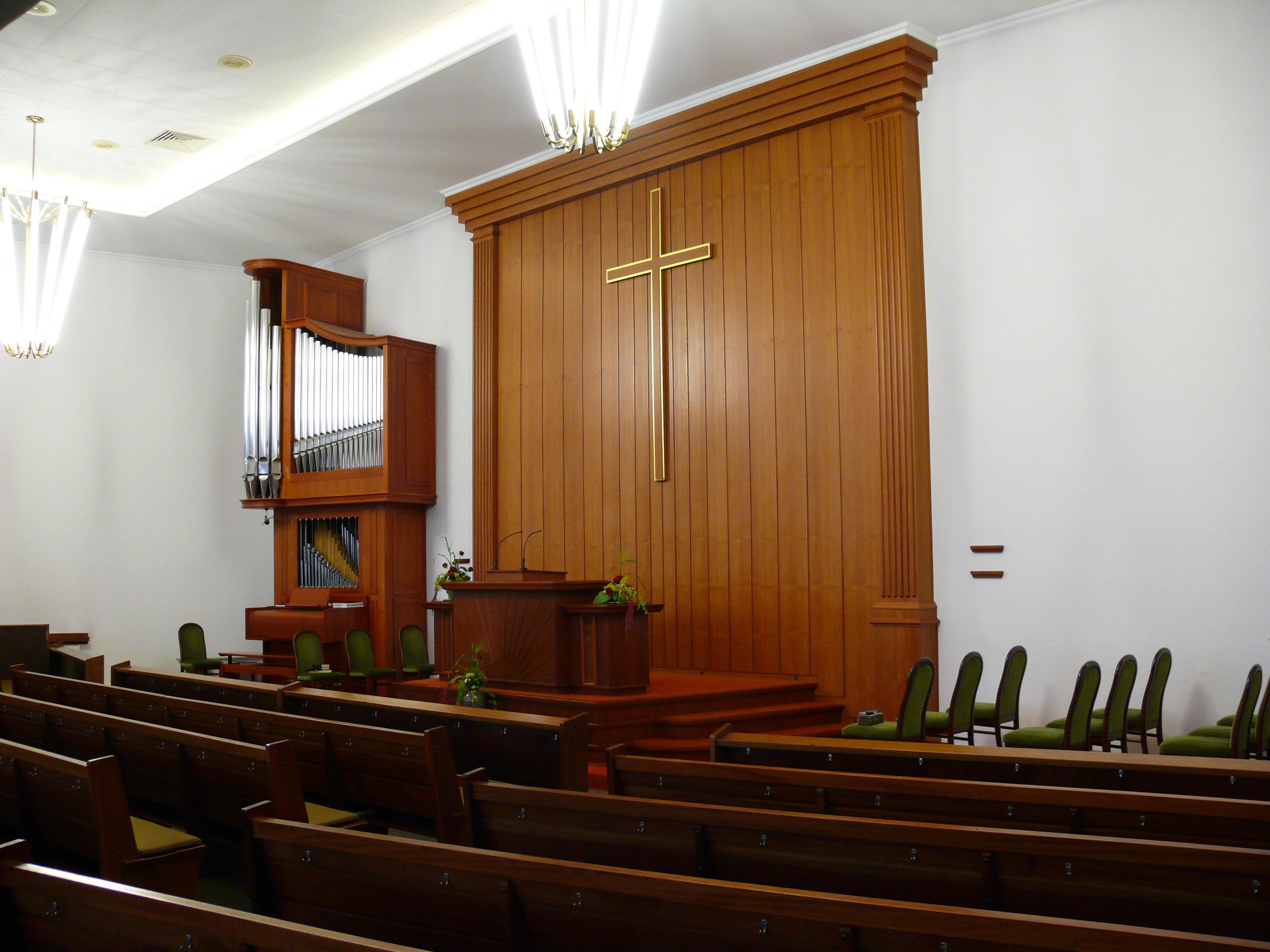 Da, ab 1945, aus den Ostgebieten viele Geschwister und Amtsträger nach Neumünster kamen, waren die Räume in der Theodor-Storm-Straße endgültig zu klein. Einige Jahre kam die Gemeinde in der Aula der Holstenschule zusammen, bis dann im Herbst 1953 ein Bauplatz für eine eigene Kirche gekauft werden konnte. Allerdings begannen die Vorbereitungen für dieses Kirchengebäude schon 1950.